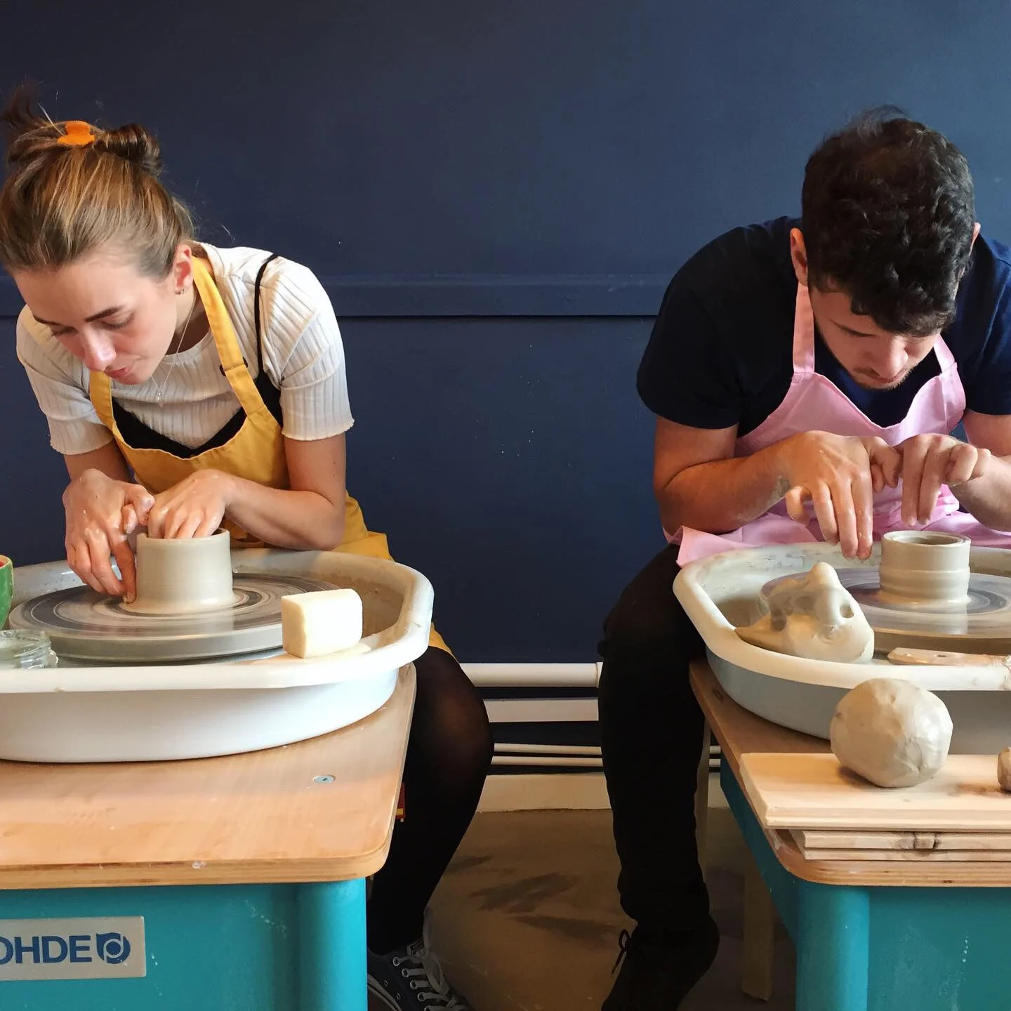 One of our super talent pottery teachers will give you a demonstration to show you the ropes and fill you full of confidence. After this it’s your go! They will talk you through each stage and remind you of the moves as you create your first ever pot (a bit like you’re all doing a synchronised danced routine). You’ll be making two pots each, with a short break in between of about 5 minutes while our potters re-set your wheel with your next ball of clay and then you’re ready to make your second pot.