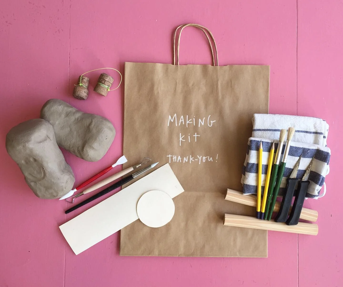 When your kit hire is up, pop by the studio in your designated drop-off window to return our materials + your masterpieces. You’ll be given a checklist to make sure you’ve put everything back in the box for us.